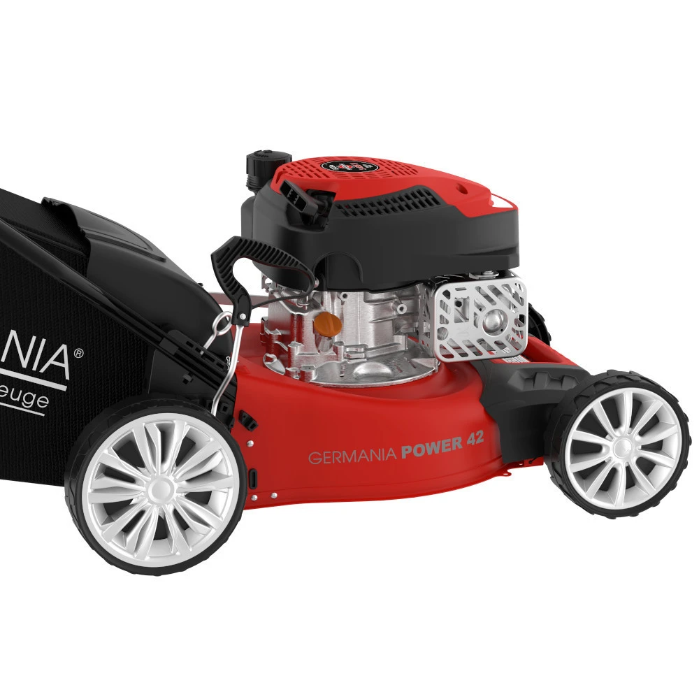 - 1 x Germania Benzin Rasenmäher Power 42 mit 2,7 PS und Hinterradantrieb