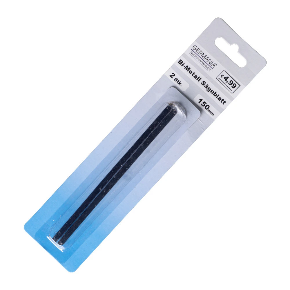 2 Bi-Metall Sägeblätter 150 mm von GERMANIA im Set. Die Sägeblätter aus Bi-Metall sind für kleine Bogensägen geeignet und sorgen für ein einfaches und reibungsloses Sägen mit guter Schnittqulität.