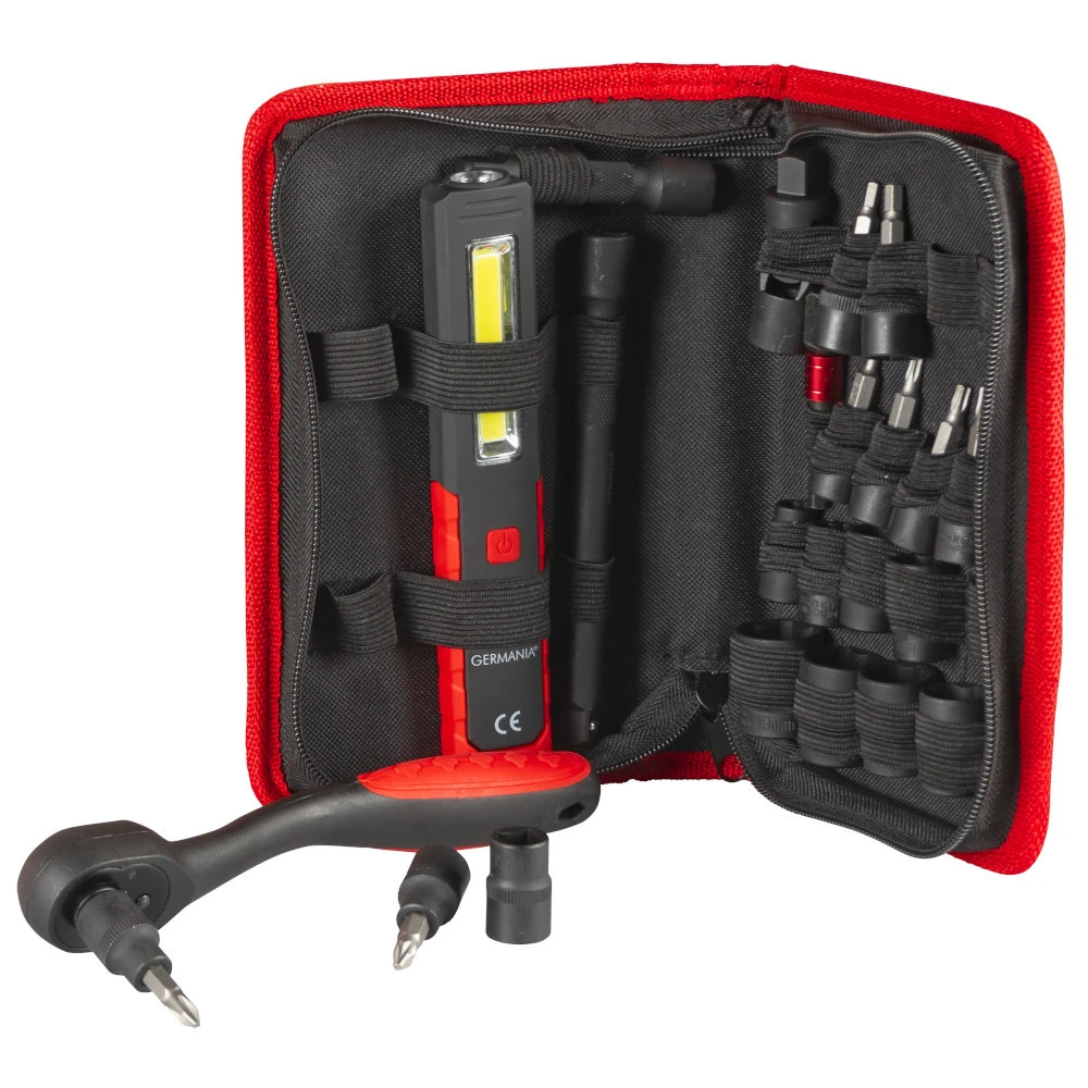 Steckschlüssel Satz 24-teilig mit den gängigsten Größen und Arbeitsleuchte